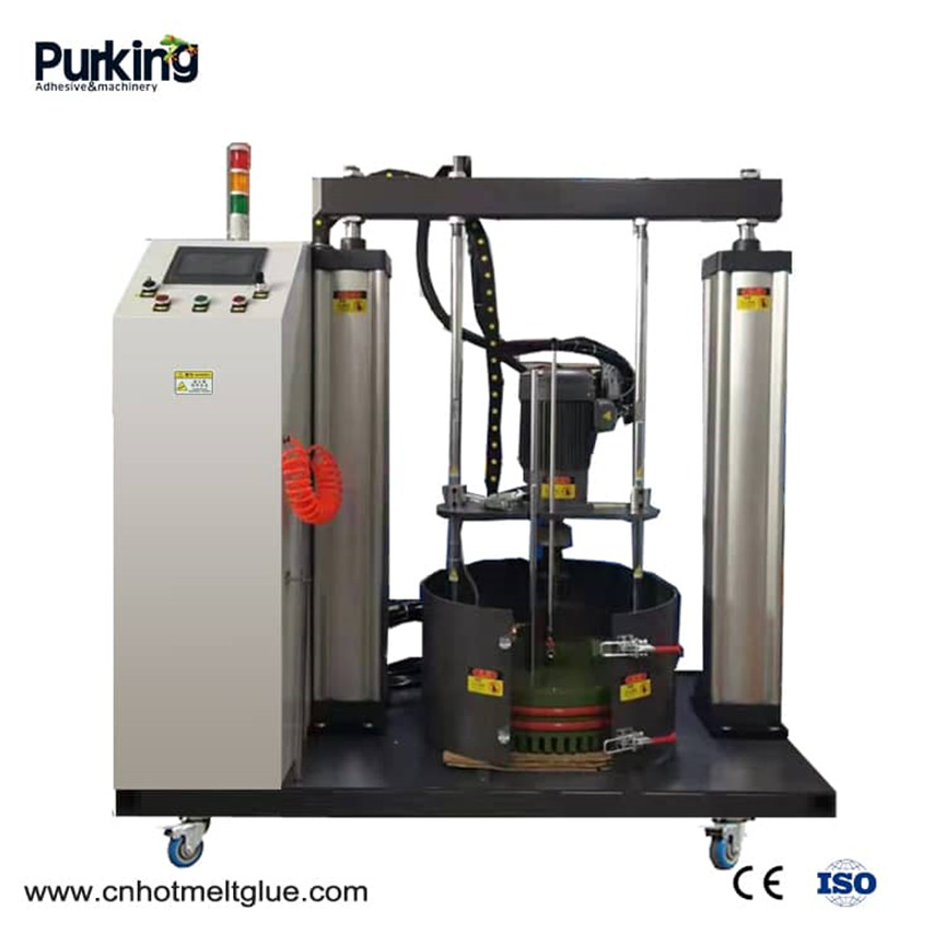To clean PUR bulk melter, you need to buy a special PUR bulk melter cleaning agent. Pour the cleaning agent into the empty PUR bulk melter barrel, and then install it on the PUR bulk melter. Turn on the machine and heat it to about 130 degrees, and then discharge the cleaning agent through the hose glue gun. In this way, the residual hot-melt adhesive and carbide in the machine will be discharged.