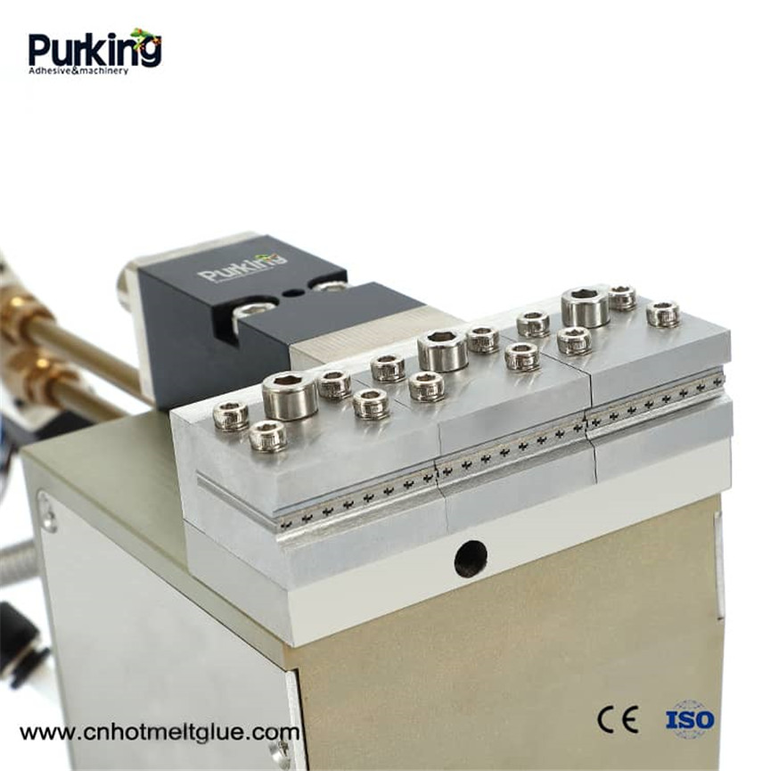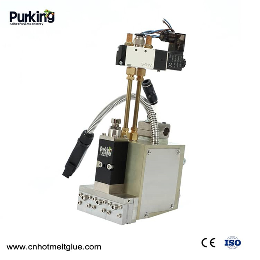 A: Our hot melt glue gun adopts precise and unique fiber nozzle design, reasonable and simple structure, easy to clean, precise spray glue control, excellent atomization effect, truly non-woven fabric, perforated film spray glue without reverse osmosis.
